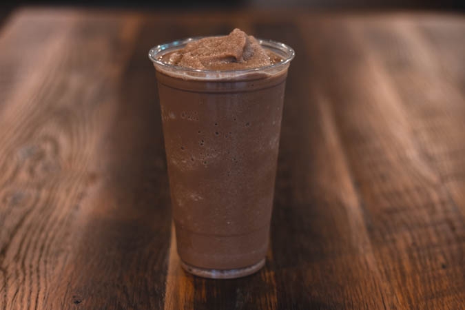 Chocolate Brownies Overflowing with Rich Chocolate Chunks & Drizzled with Chocolate Fudge & Smoothie