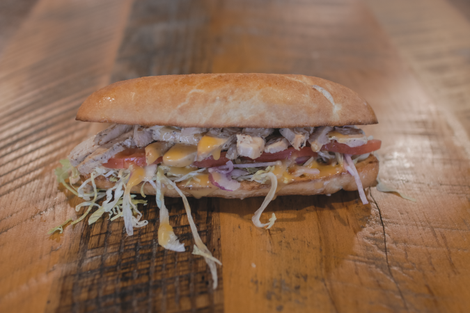Provolone, Caramelized Onions, Bell Peppers, Jalapenos & Chipotle Mayo, Chicken or Beef