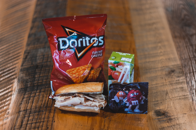 Roasted Turkey Breast. Includes Chips, Apple Juice & M&M’s.
