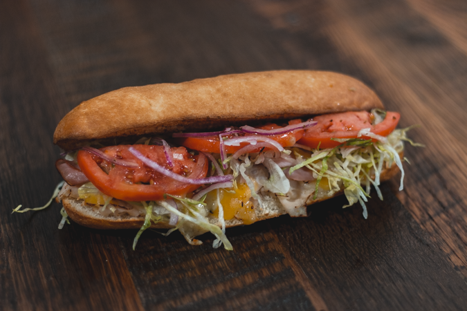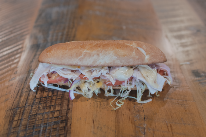 Roasted Turkey Breast, Provolone, Served the MANE WAY with Lettuce, Tomato, Onion, Pickle Spear, & House Italian Dressing